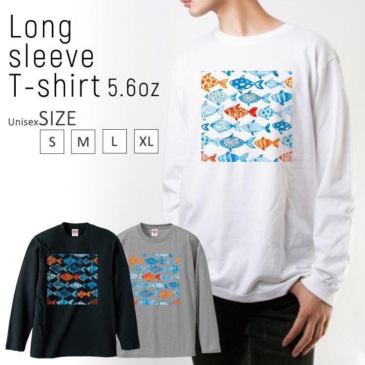 Tシャツ ロンt 長袖 メンズ 男女兼用 魚 おさかな イラスト 海 魚群 かわいい メンズファッション ロングtシャツ Longt8543 Three O One 301 Store 通販 Yahoo ショッピング